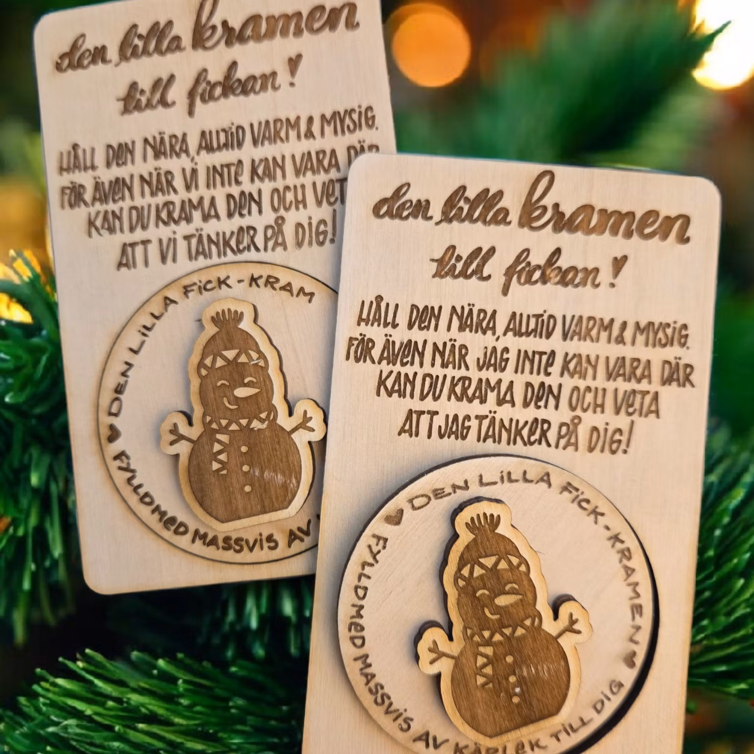 Tillverkad av hållbart plywood, kombinerar Fick-kramen naturens enkelhet med en personlig touch. Varje kram är unik, precis som de relationer du värnar om.