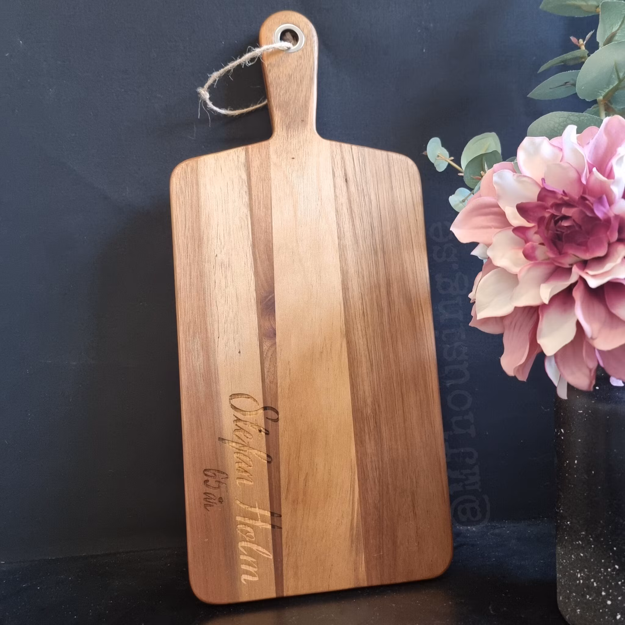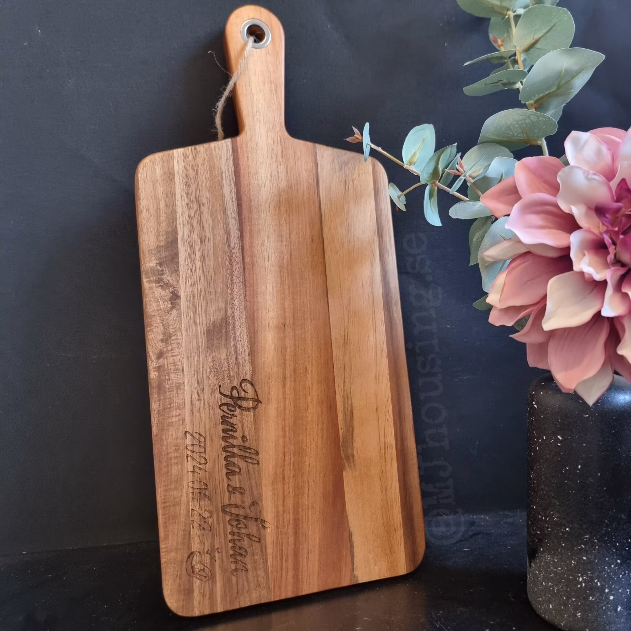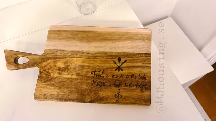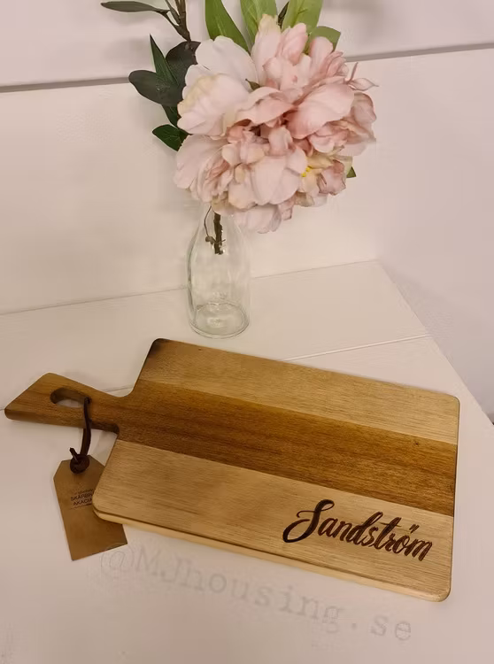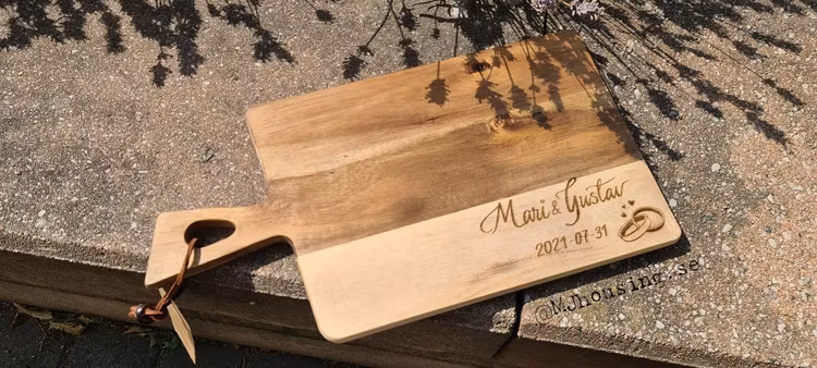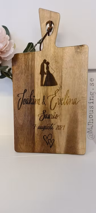 Graverad skärbräda med personlig text