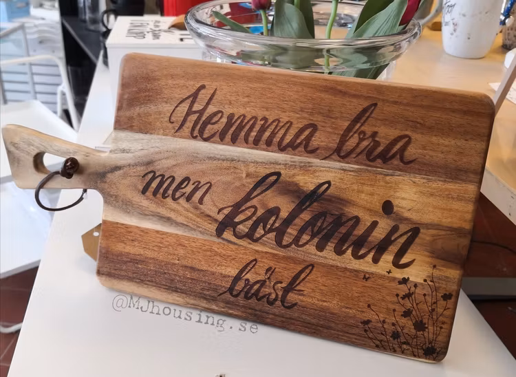 Ange så detaljerat som möjligt hur du önskar just din skärbräda. Gravering endast på en sida