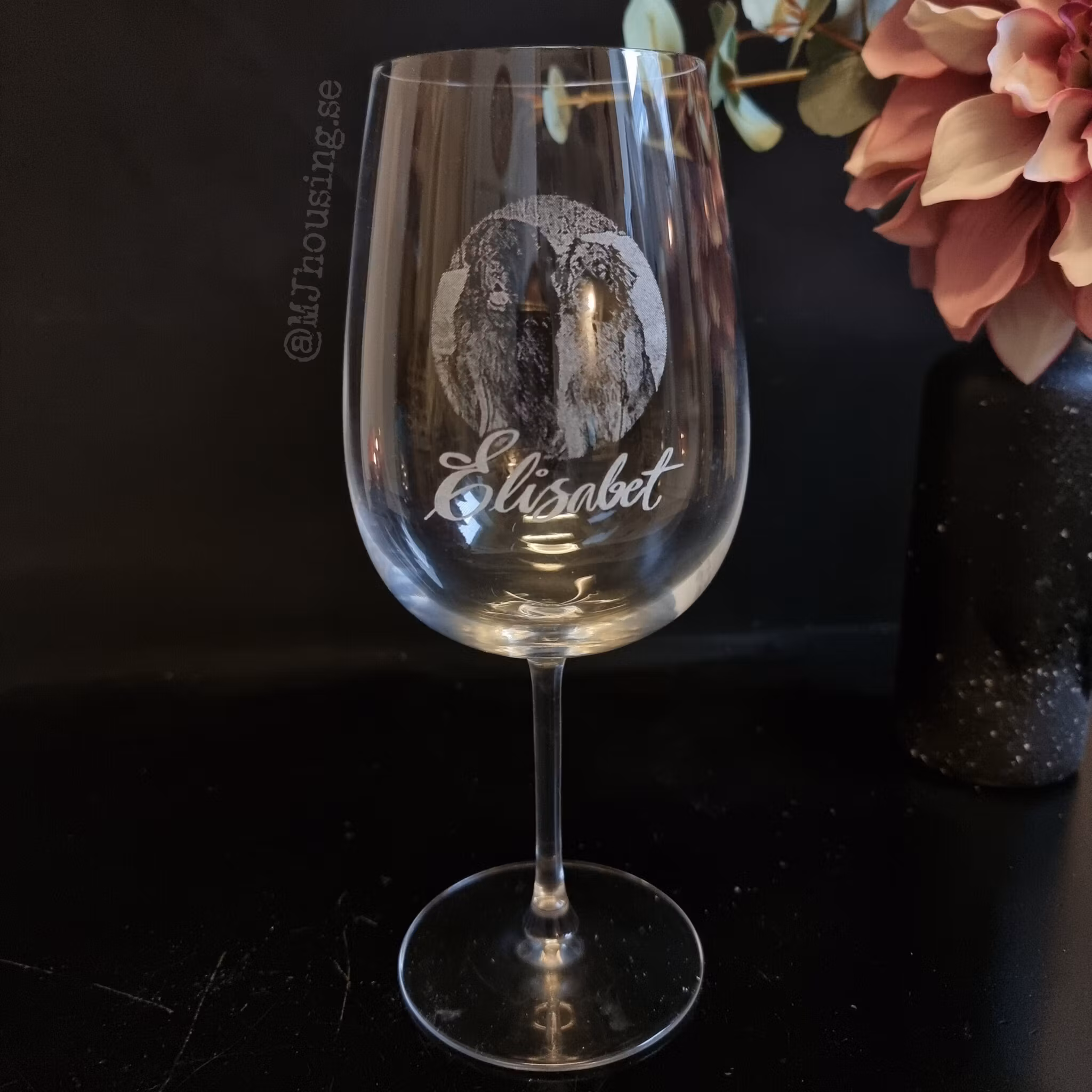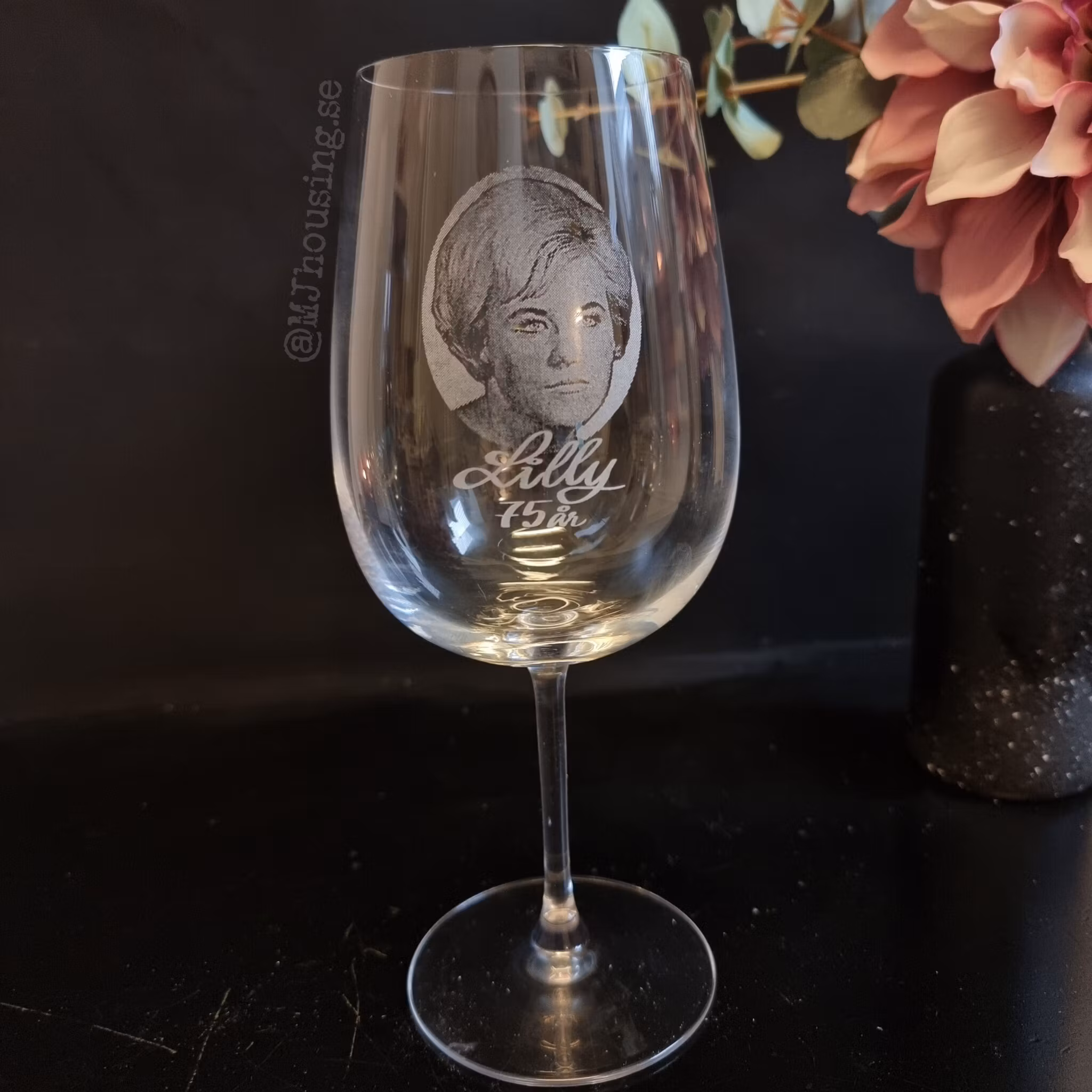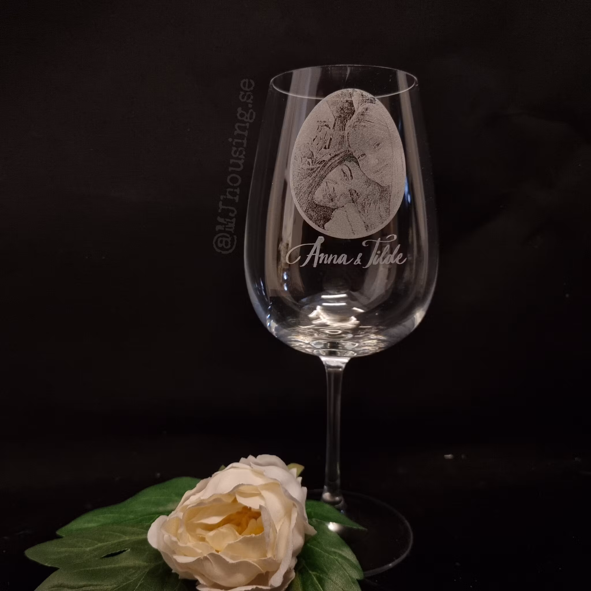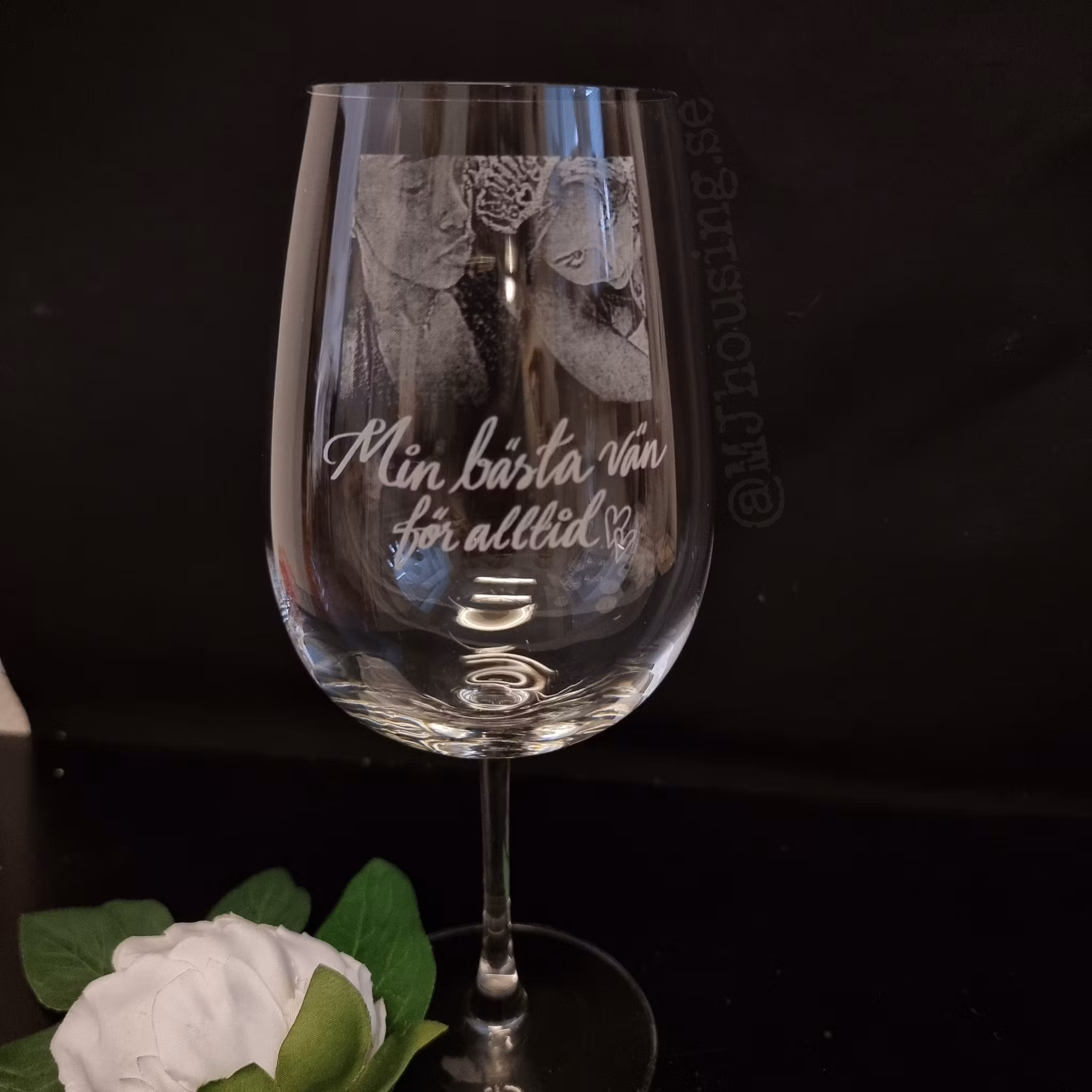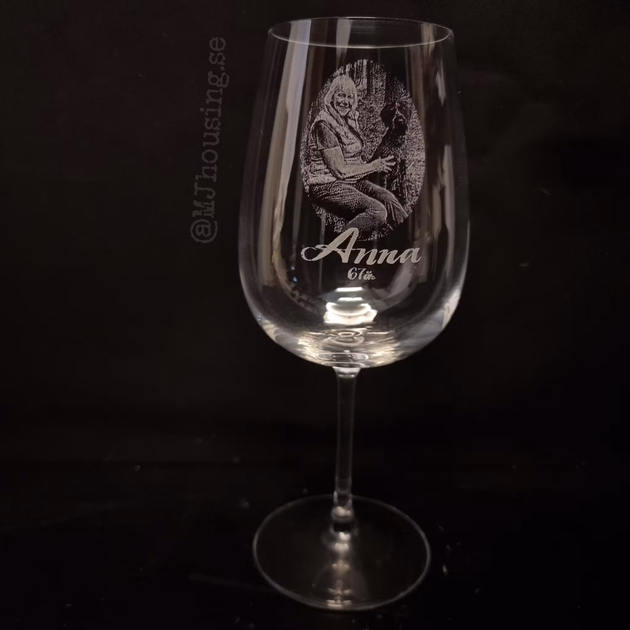 Graverat vinglas med Foto eller logga