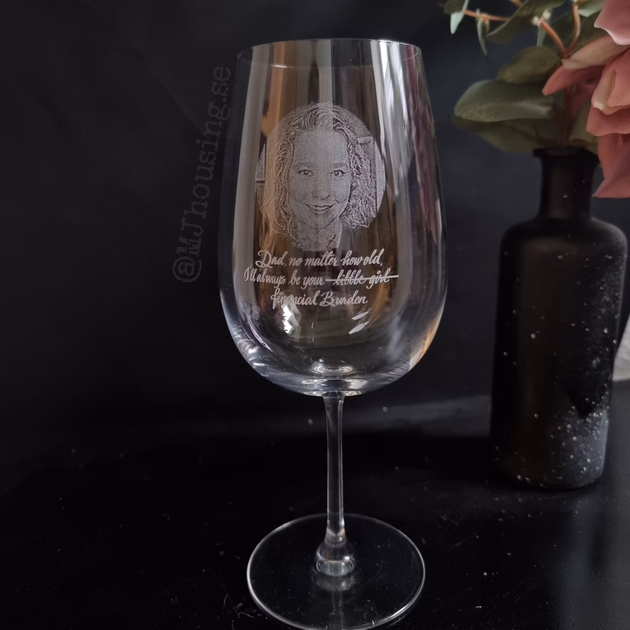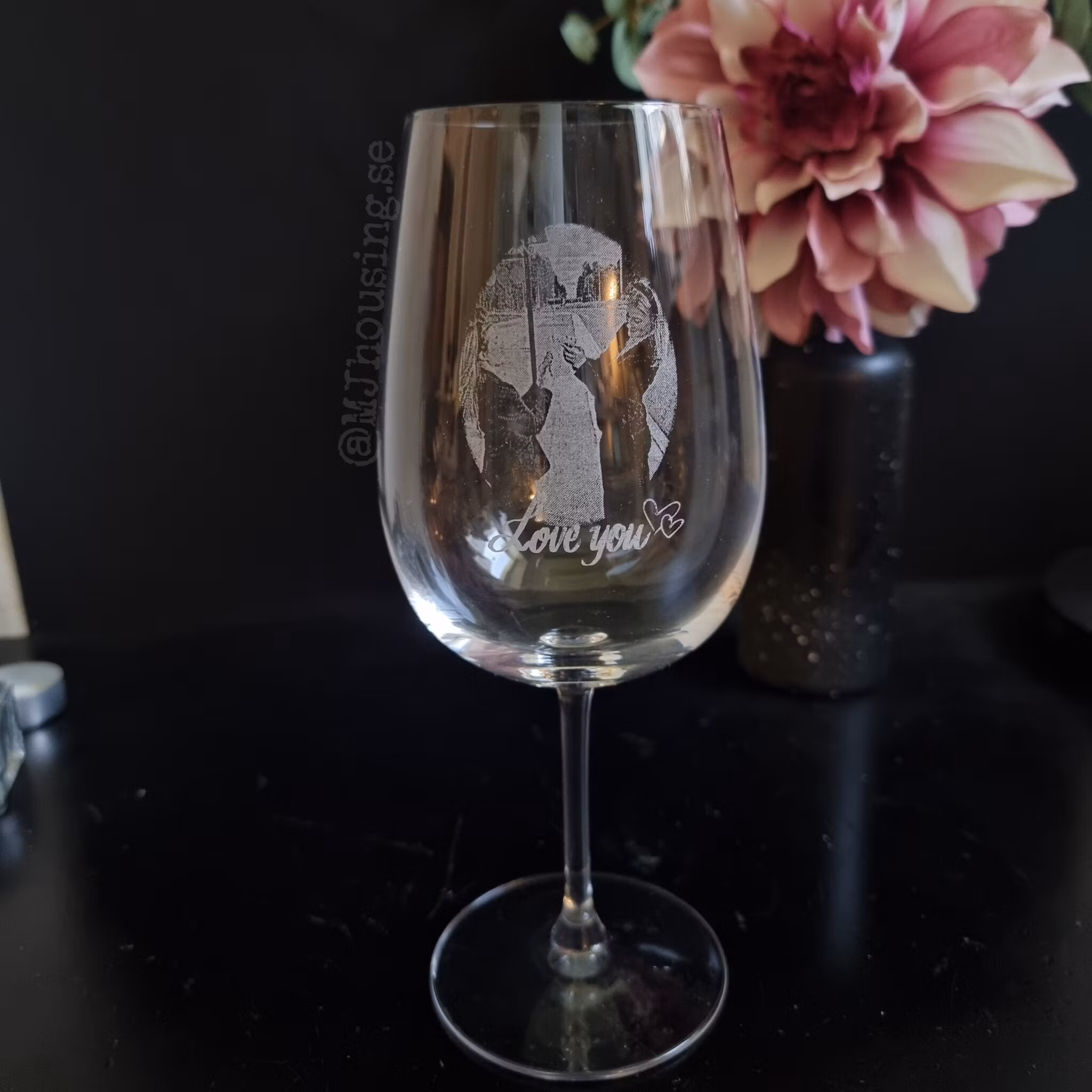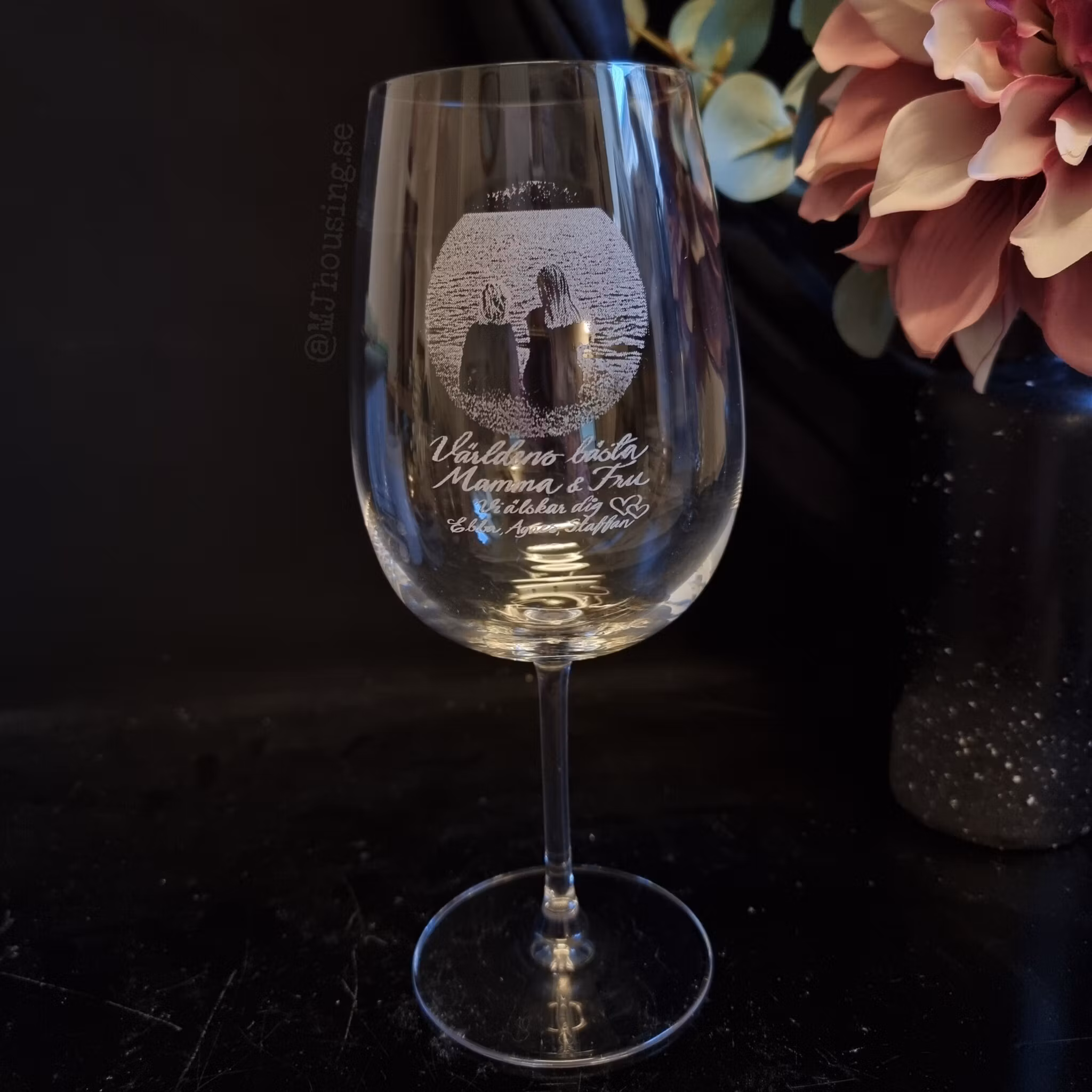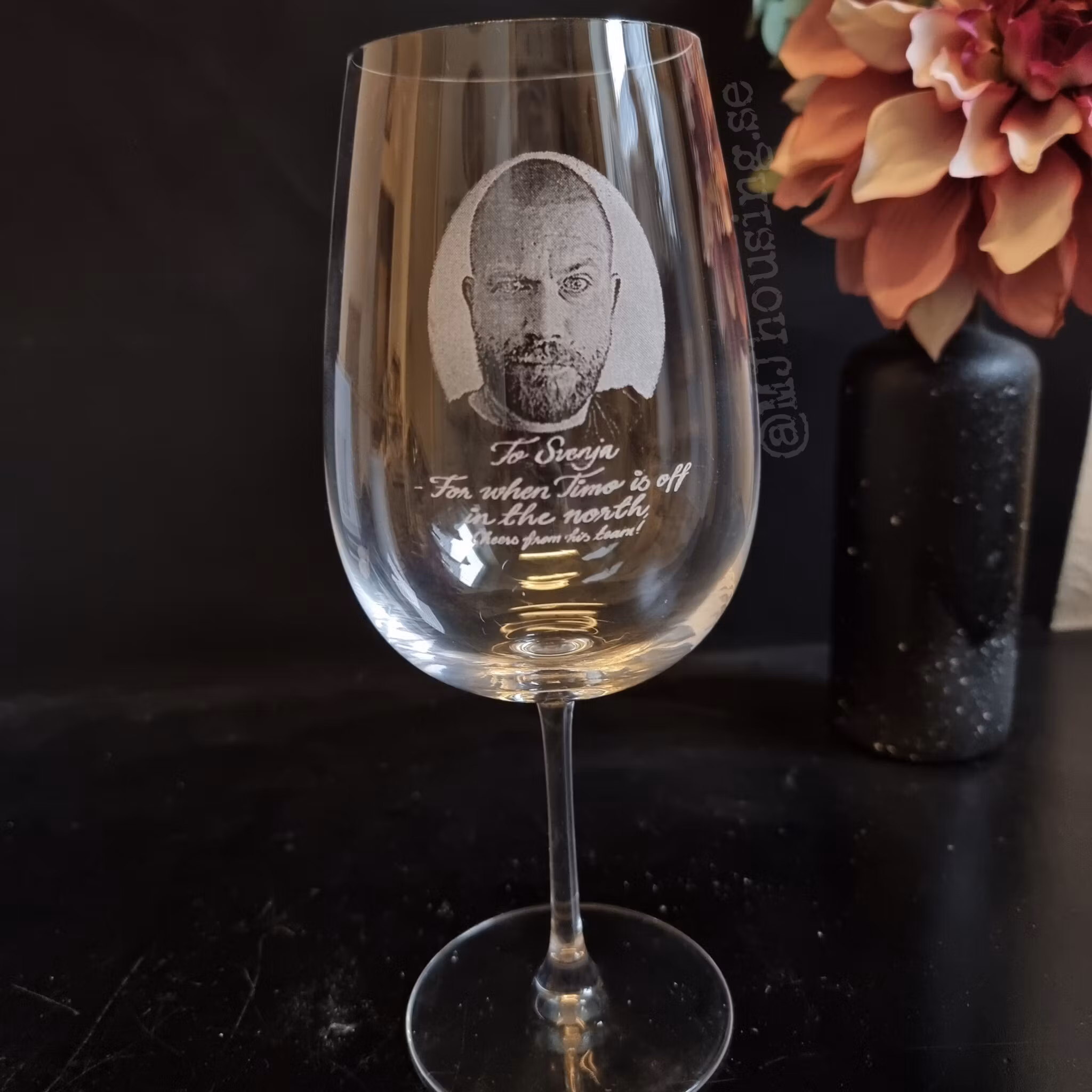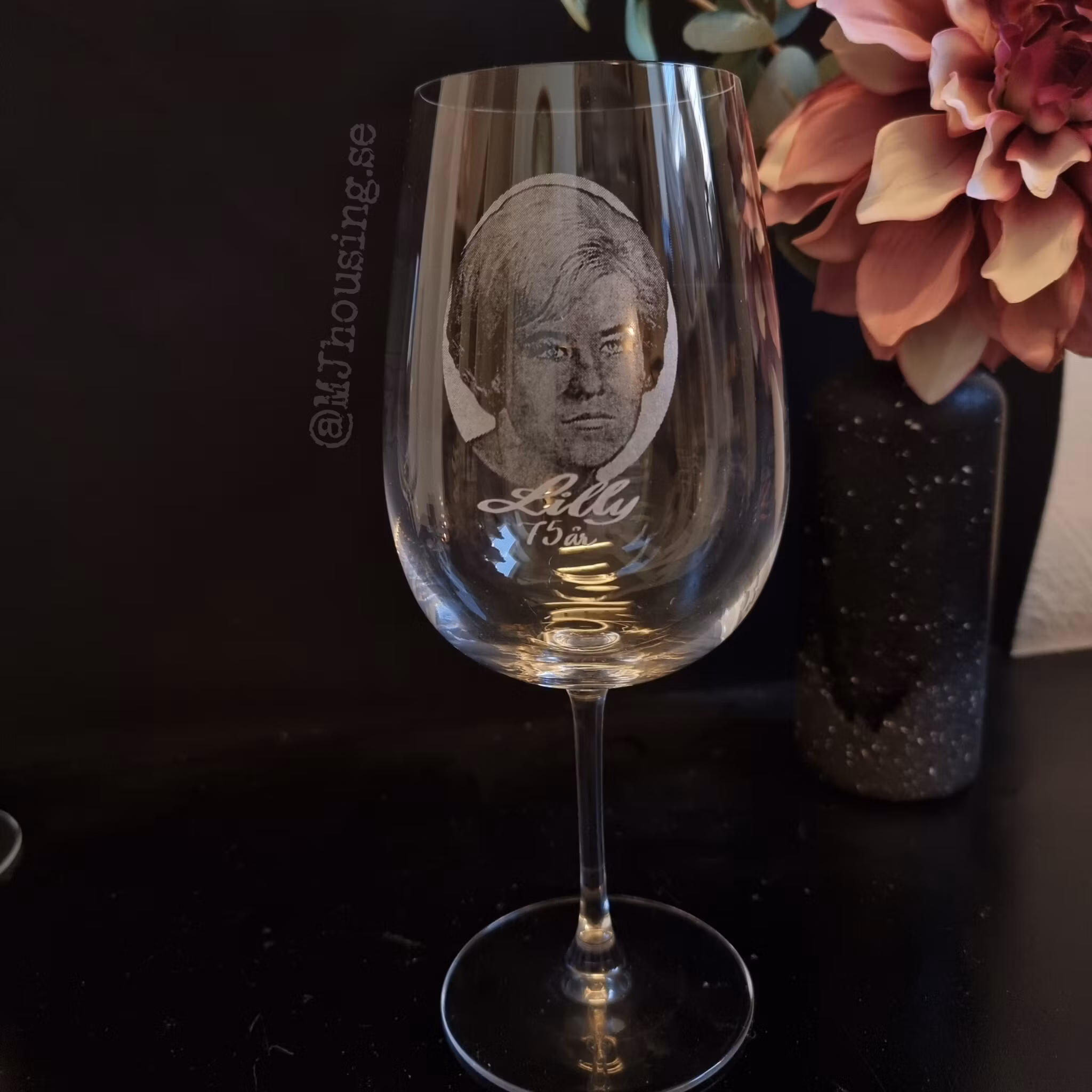 Graverat vinglas med Foto eller logga