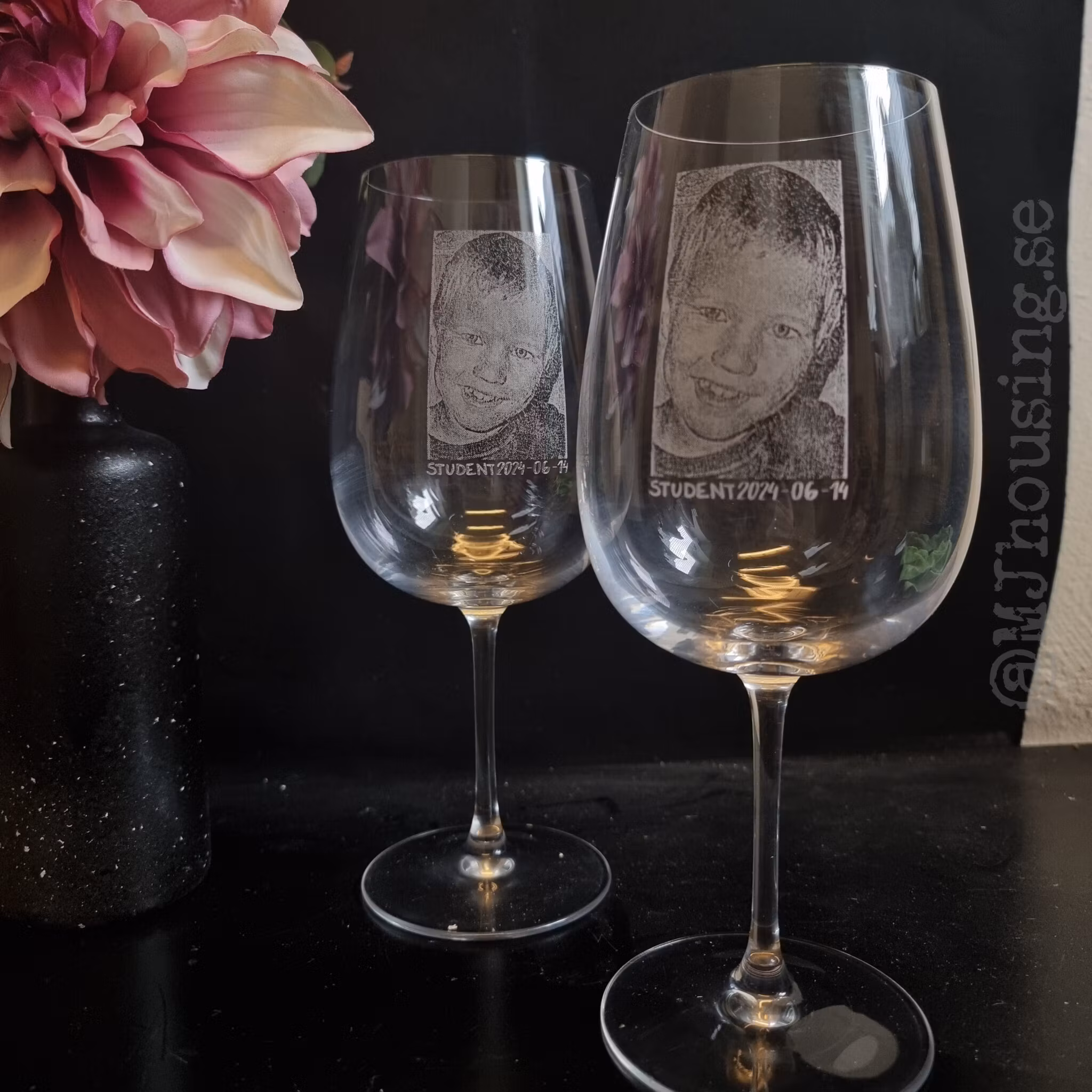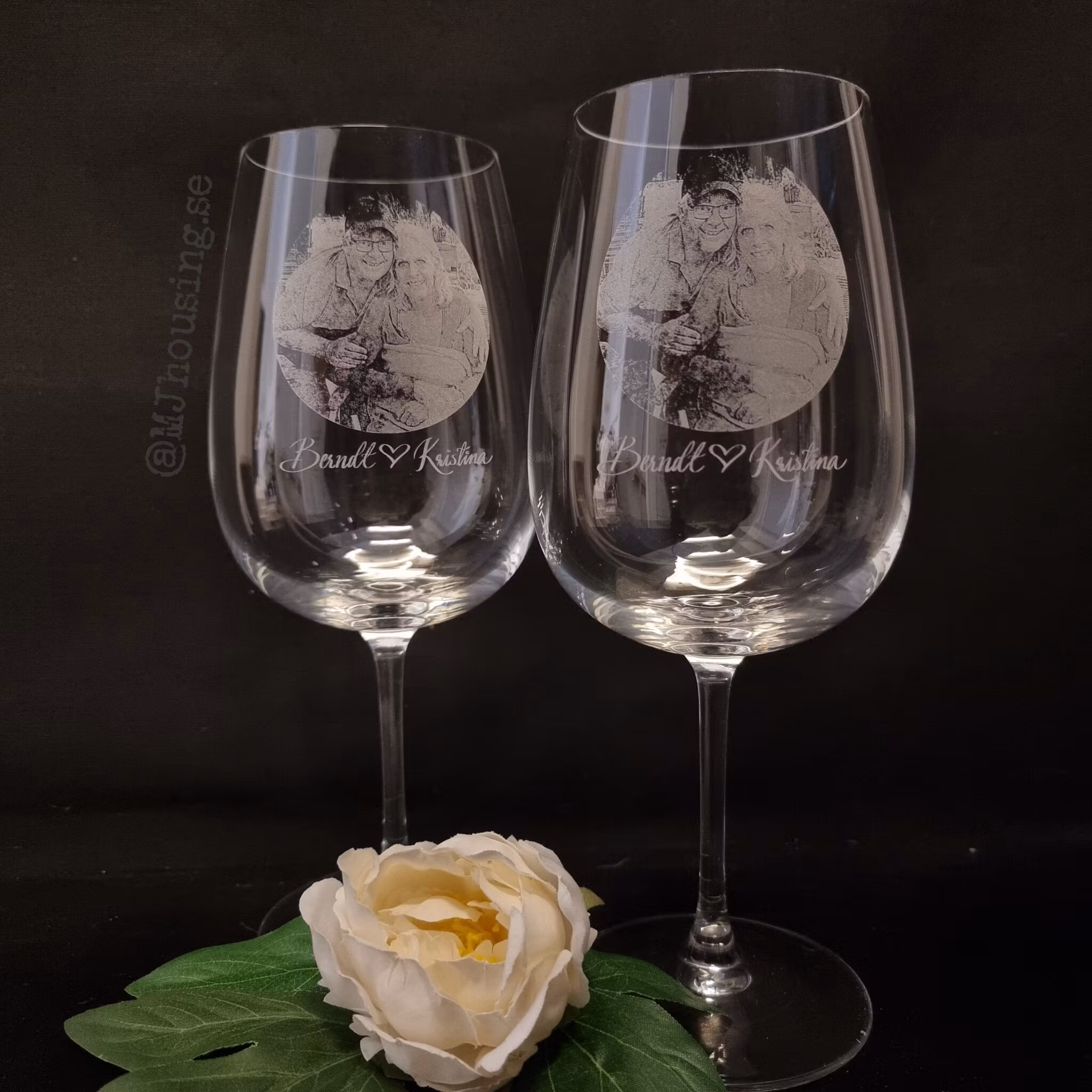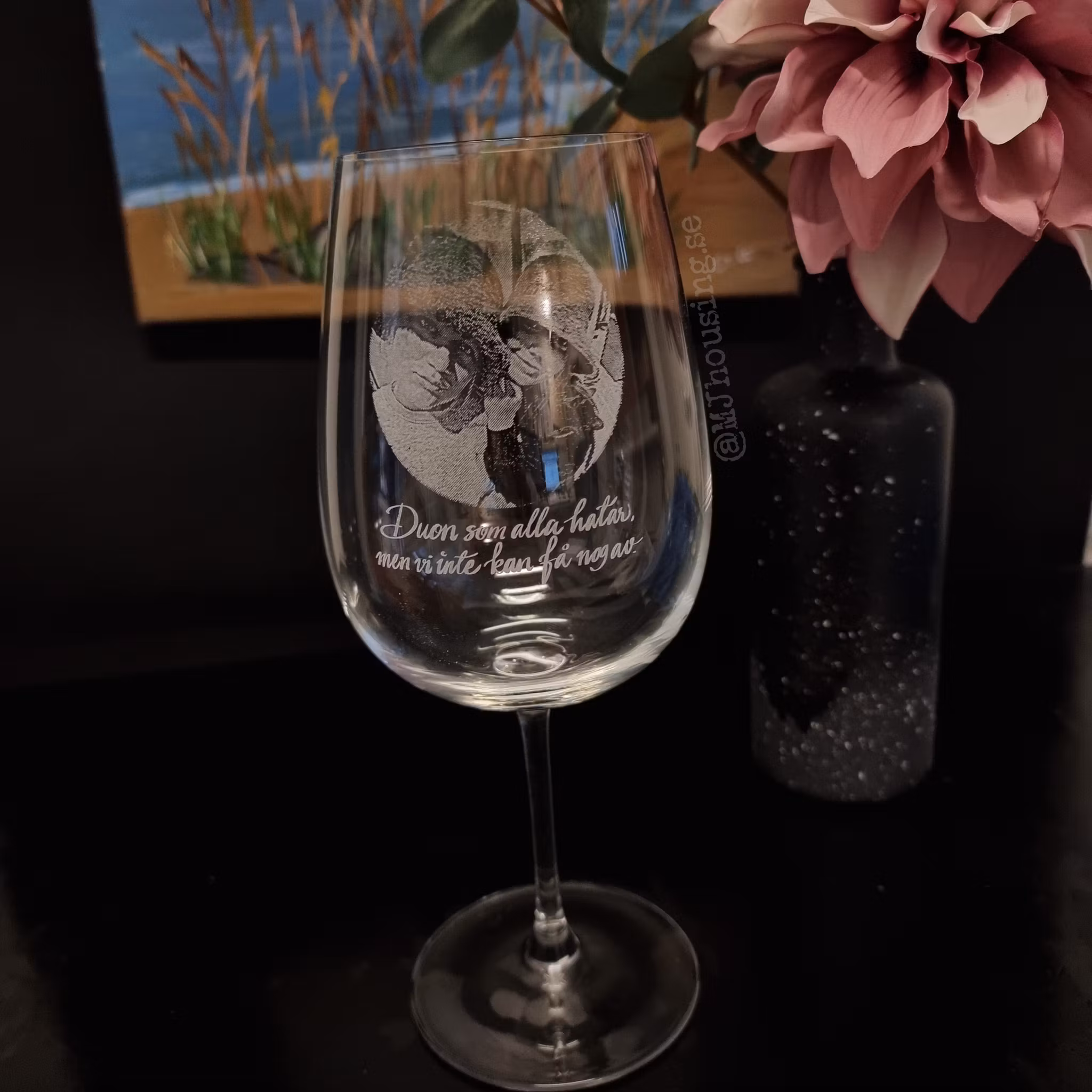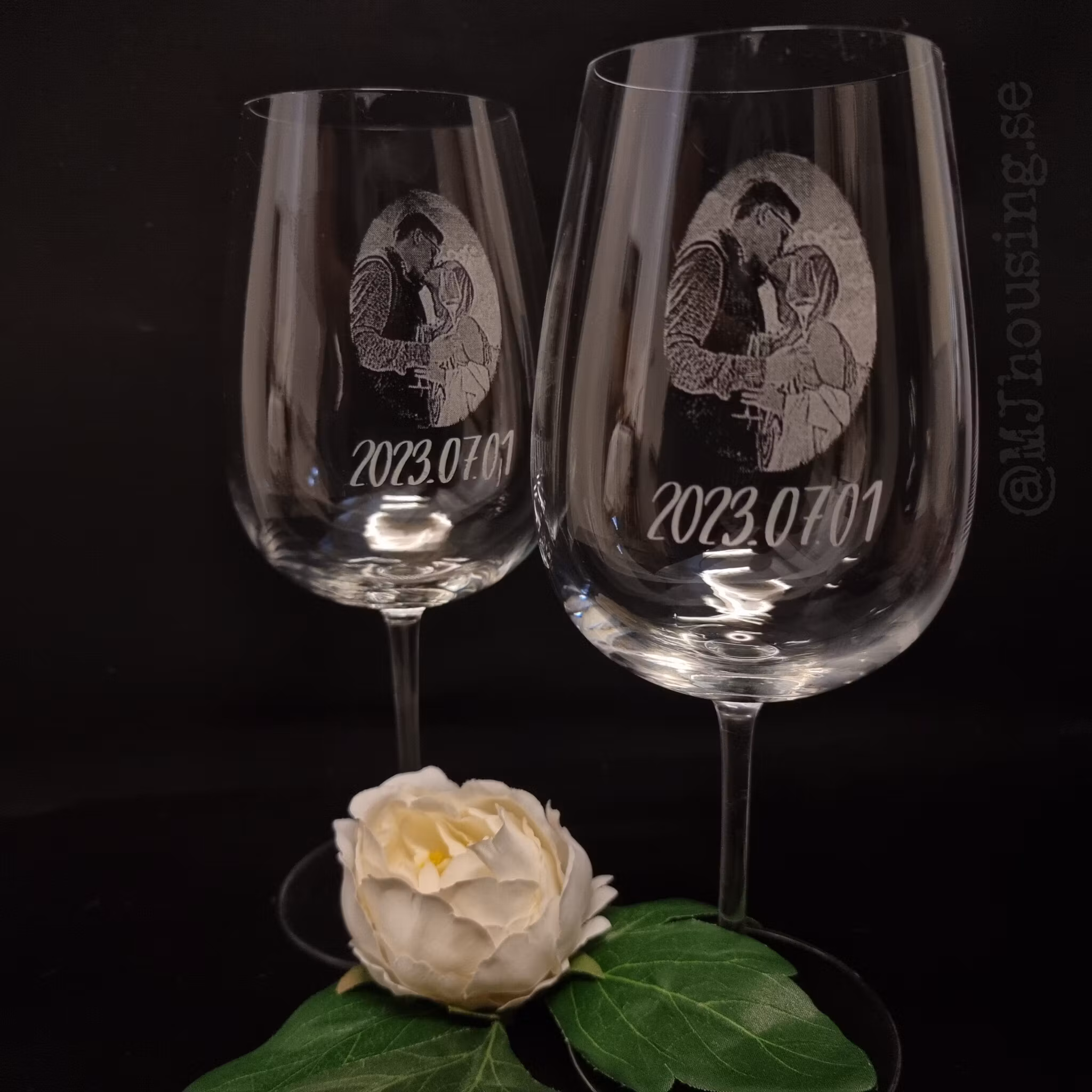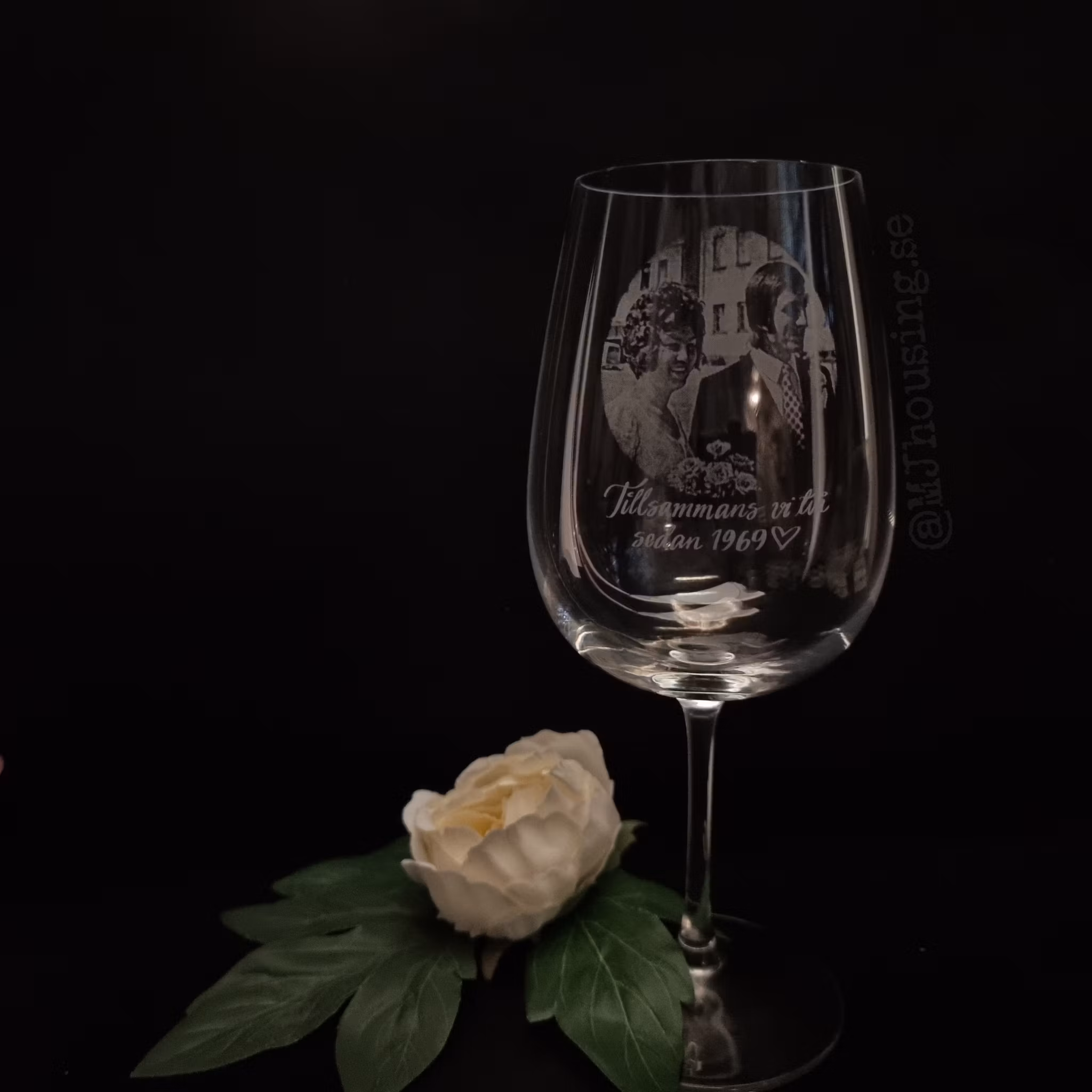 Graverat vinglas med Foto eller logga