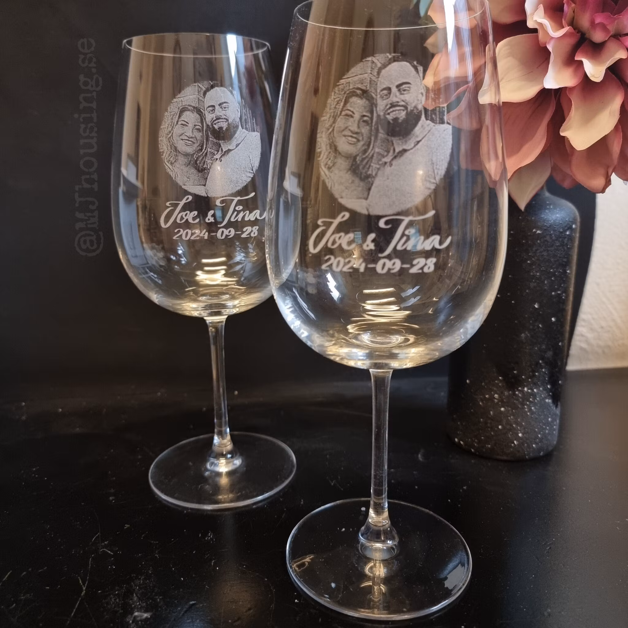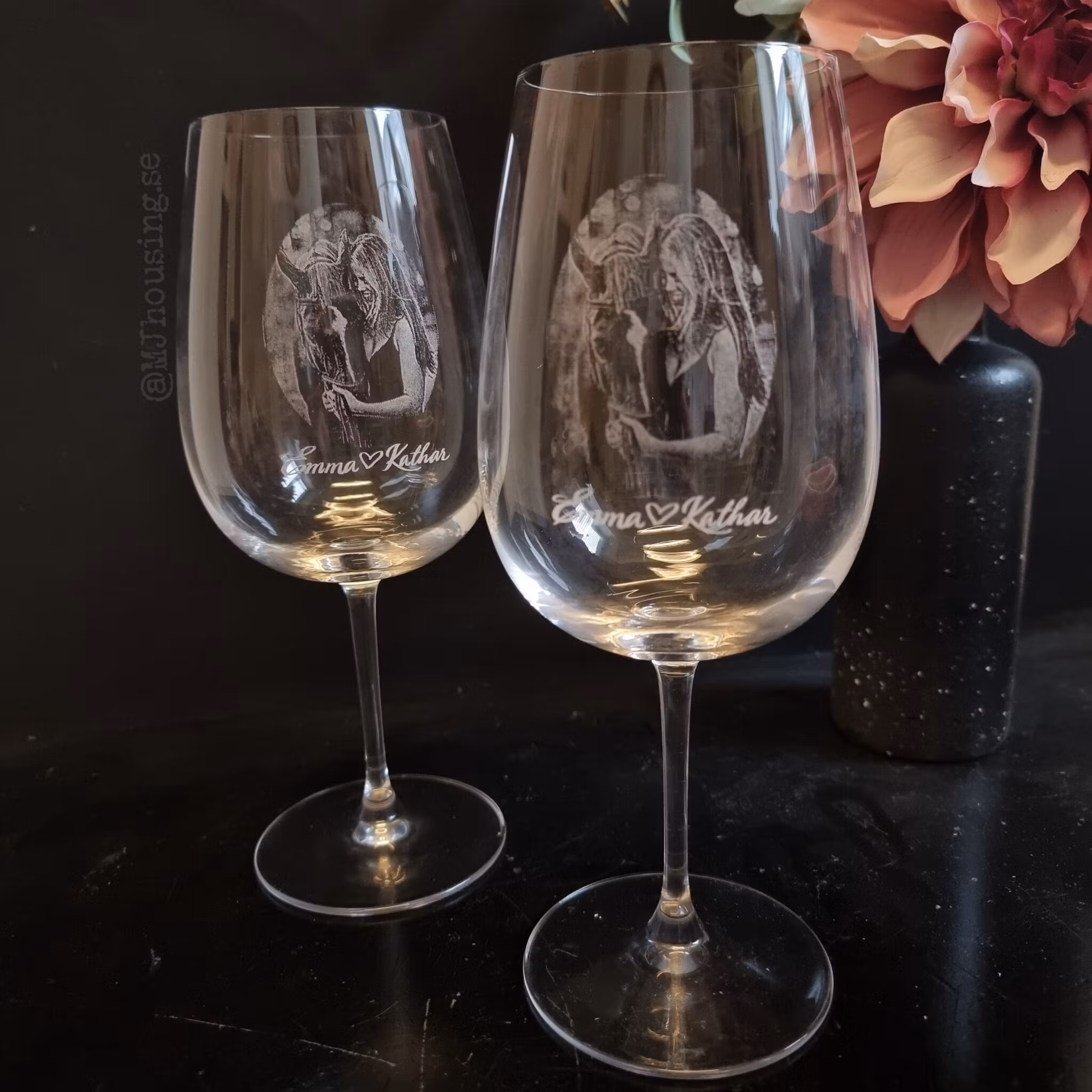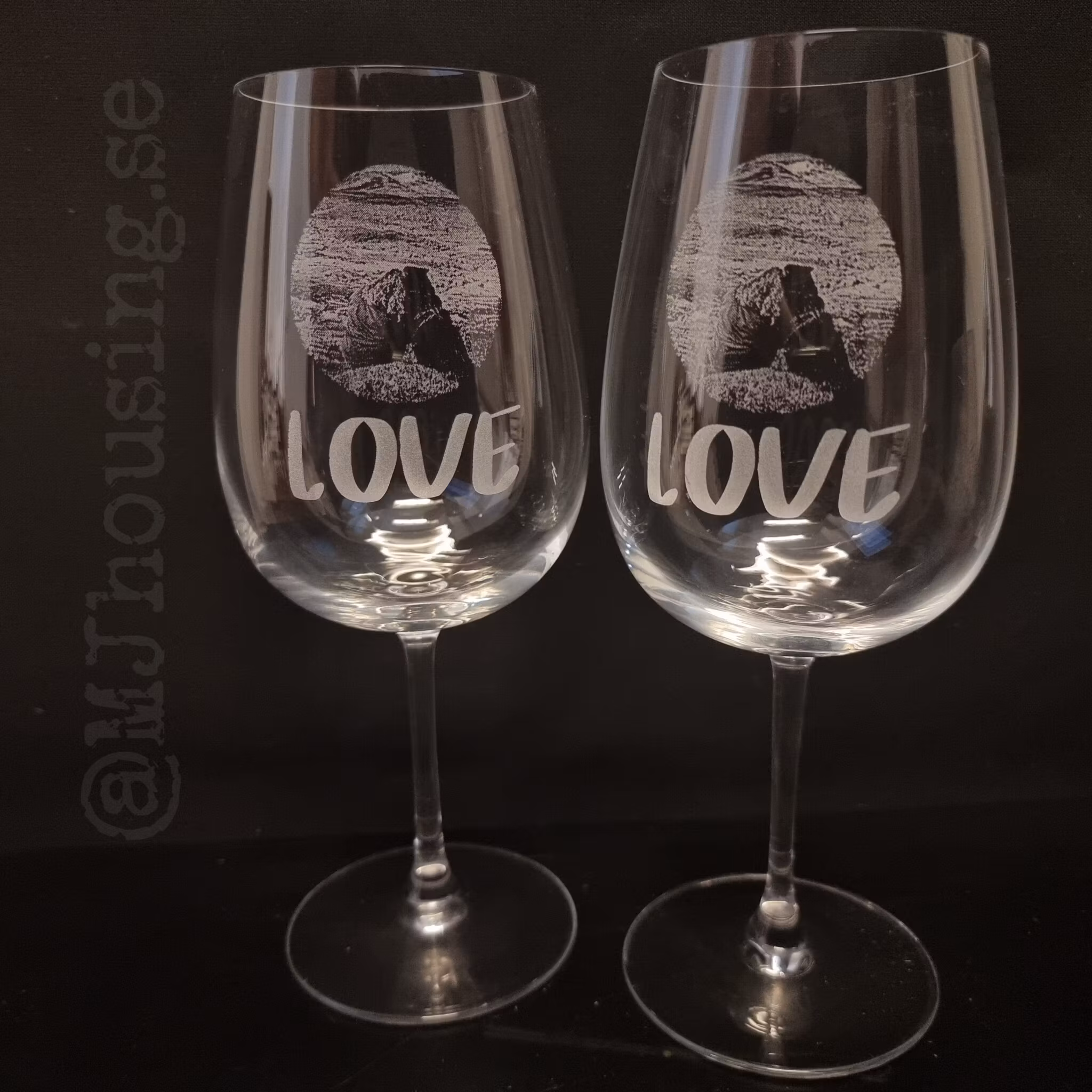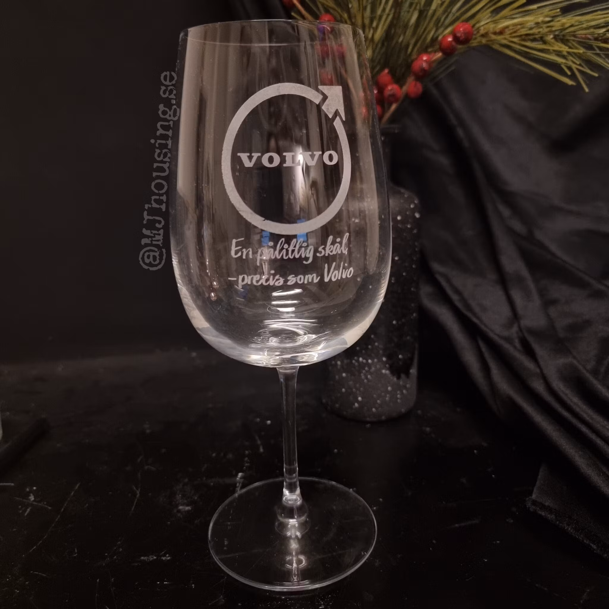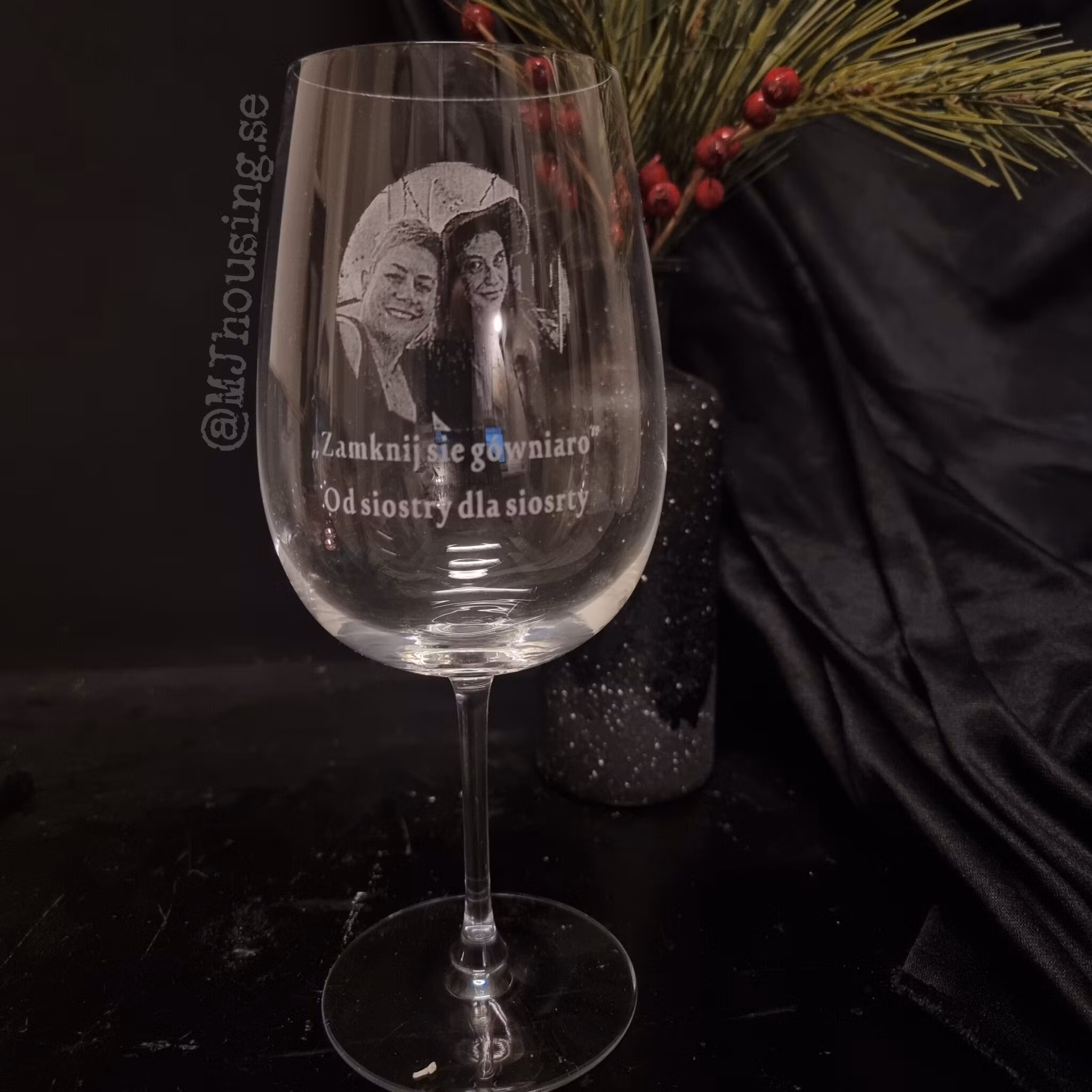 Graverat vinglas med Foto eller logga