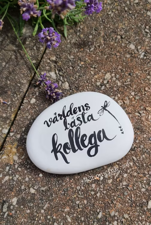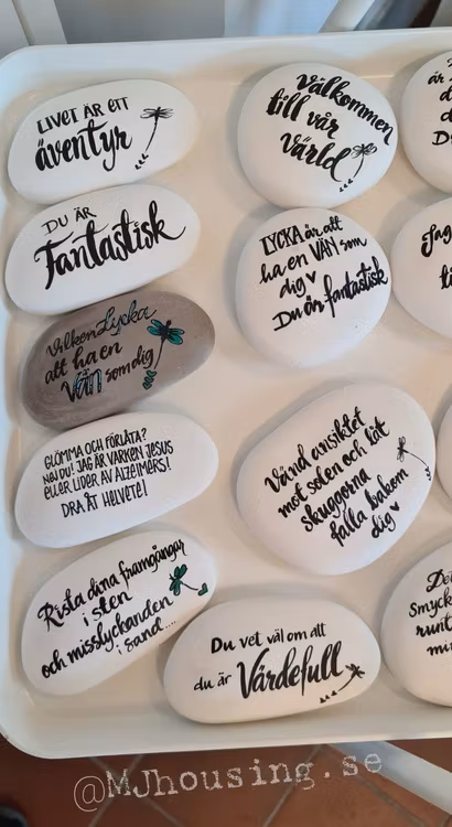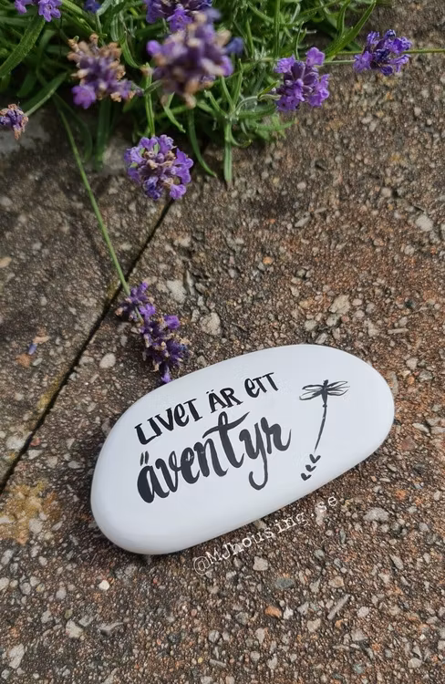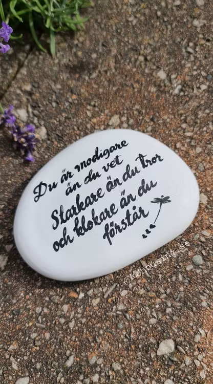 Handtextas med dina ord & tankar med hobbyfärg för utomhus. Detta gör texten tåligare men kan med tiden påverkas av väder och vind..